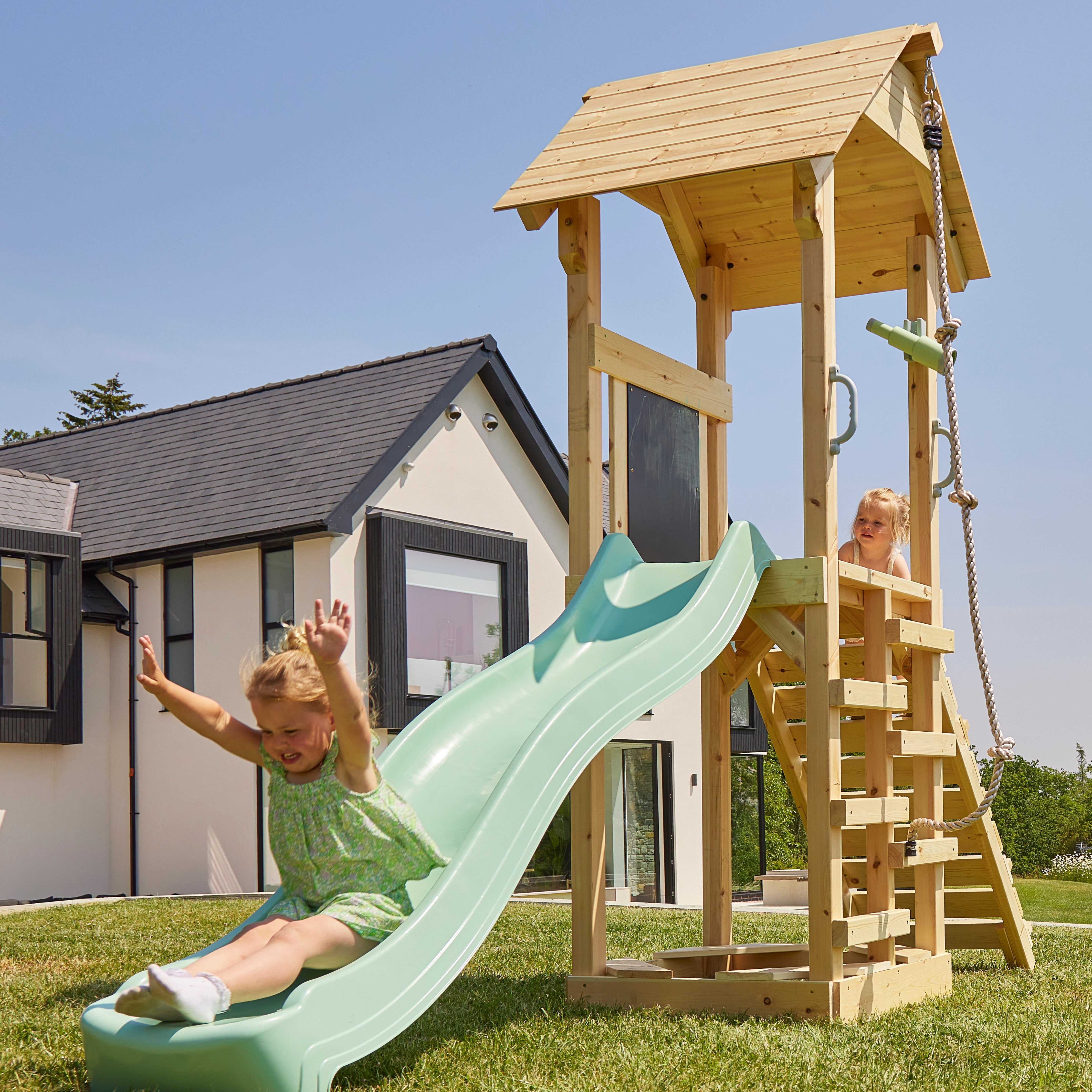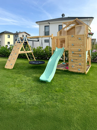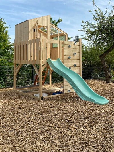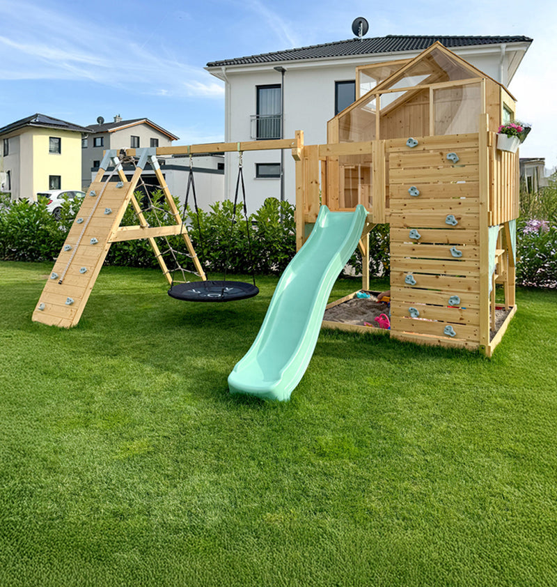 Wir versprechen dir eins: Wir haben für jede Grundstücksgröße die passenden Outdoor Spielgeräte. Wenn du nur einen kleinen Garten hast, kannst du dich für ein Spielhaus oder eine einzelne Rutsche entscheiden. Wenn du stattdessen ein vielfältiges Spielgerät suchst, das verschiedene Spielangebote vereint, sind unsere Klettertürme und Klettergerüste ideal. Sie laden mit Rutsche und Schaukeln zum ausgelassenen Toben ein. Teilweise halten unsere Klettertürme auch ein kleines Spielhaus bereit, in dem Kinder in verschiedene Rollenspiele eintauchen können. Alle Outdoor Spielgeräte aus unserem Haus bieten dir zudem die Möglichkeit, diese individuell nach den Wünschen deines Kindes zu gestalten.