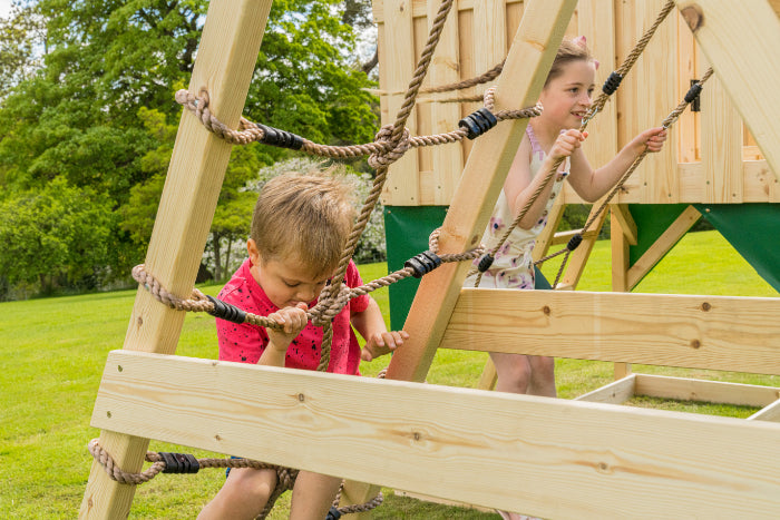 Verwandle deinen Garten in einen Abenteuerspielplatz und bestelle Schaukeln mit Kletterwand im Onlineshop von OutdoorToys!