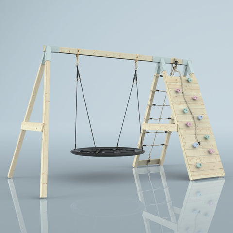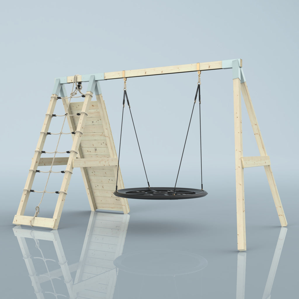 Das PolarPlay Klettergerüst Kakadu ist ein wunderschönes Holzschaukelset mit einer großen Nestschaukel und einer Kletterwand, die die perfekte Ergänzung für deinen Garten darstellt. Die Kinder können den Gedanken freien Lauf lassen, während sie die Wolken auf der Nestschaukel beobachten.