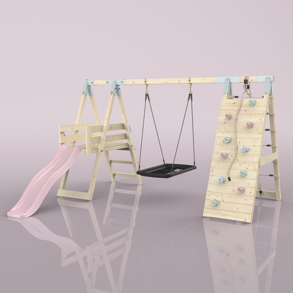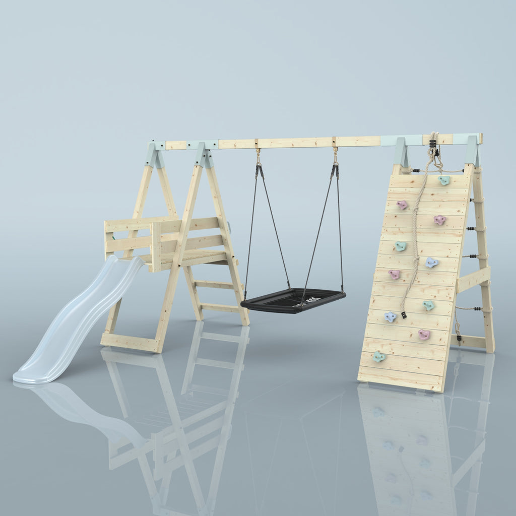 Ab in das hoppende Spaßparadies mit unserem PolarPlay Klettergerüst Känguru! Kleine Abenteurer können sich in der gemütlichen Nestschaukel entspannen, die Rutsche hinunterflitzen und die Kletterwand erobern. Mit diesem lustigen Spielset wird jeder Tag zu einem wilden Sprung durch den Garten!