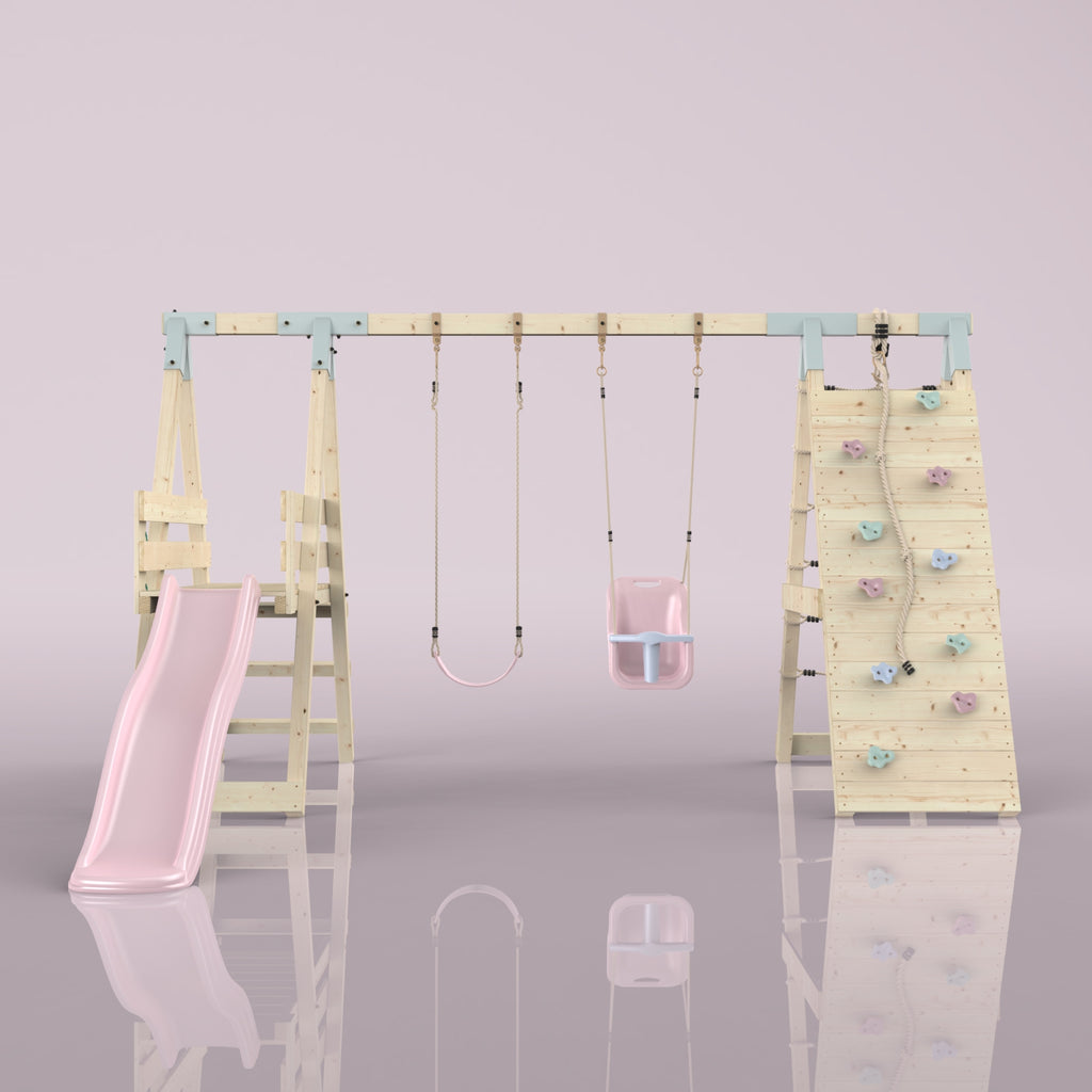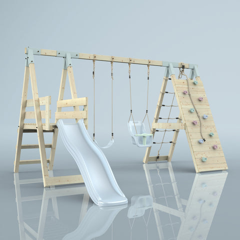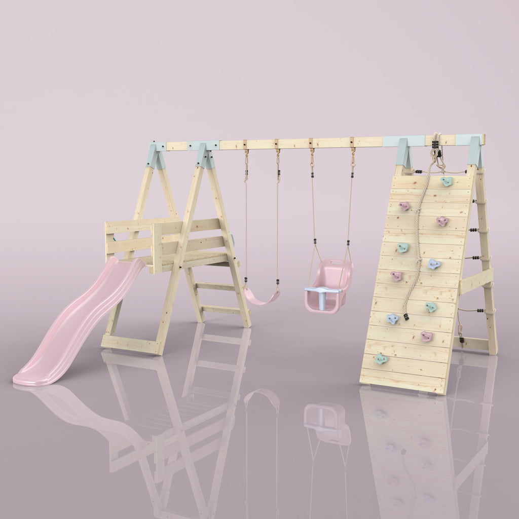 Unsere PolarPlay Schaukel Schmetterling hat alles, was sich Kinder wünschen können und lässt Kinderherzen höherschlagen. Neben der Schaukel sorgt eine Rutsche für großen Spielspaß im eigenen Garten. Schon die ganz Kleinen können dank der zugehörigen Babyschaukel den heimischen Garten aus der Vogelperspektive betrachten, während die größeren Geschwisterchen voller Abenteuerlust nicht genug von der Kletterwand bekommen.