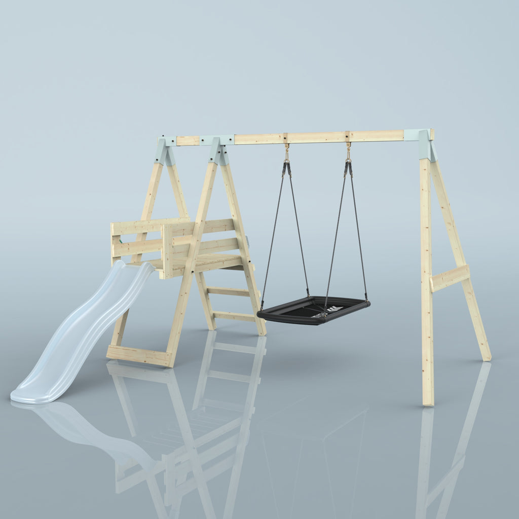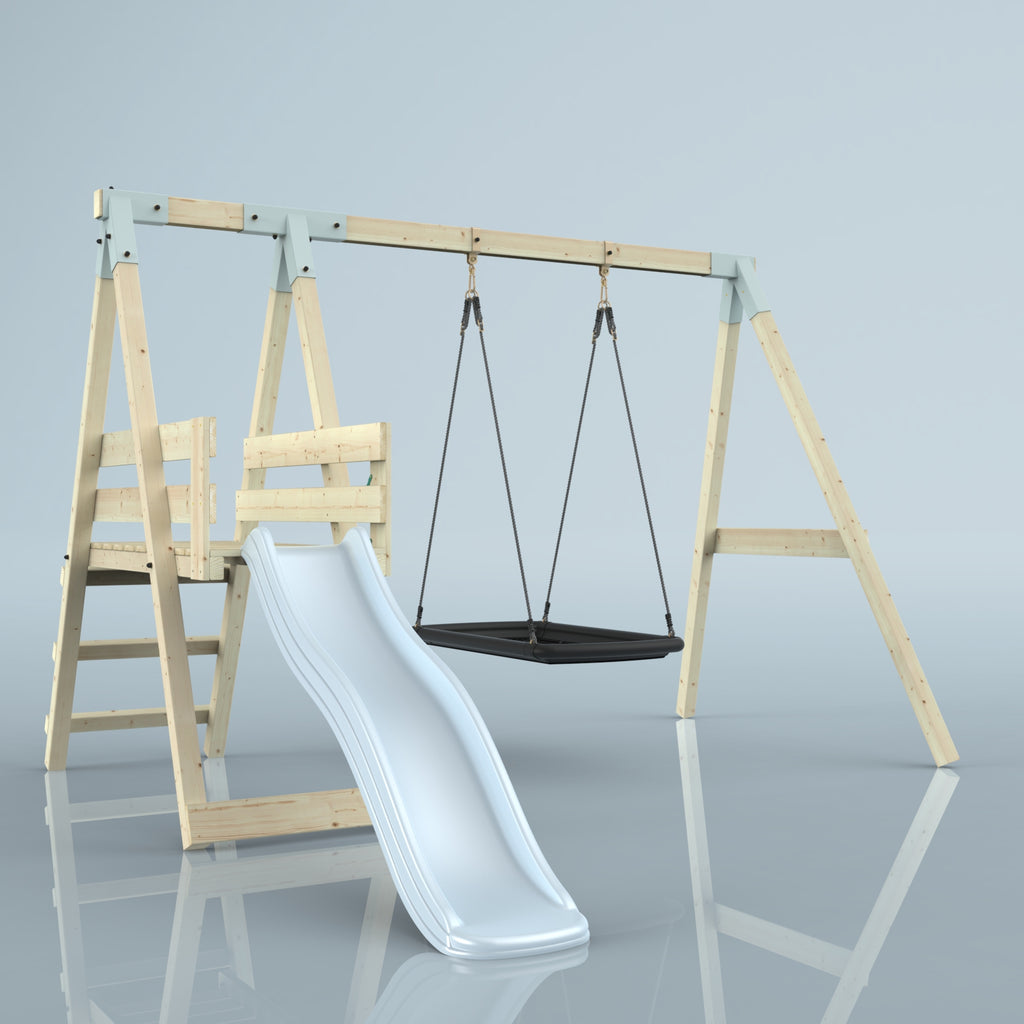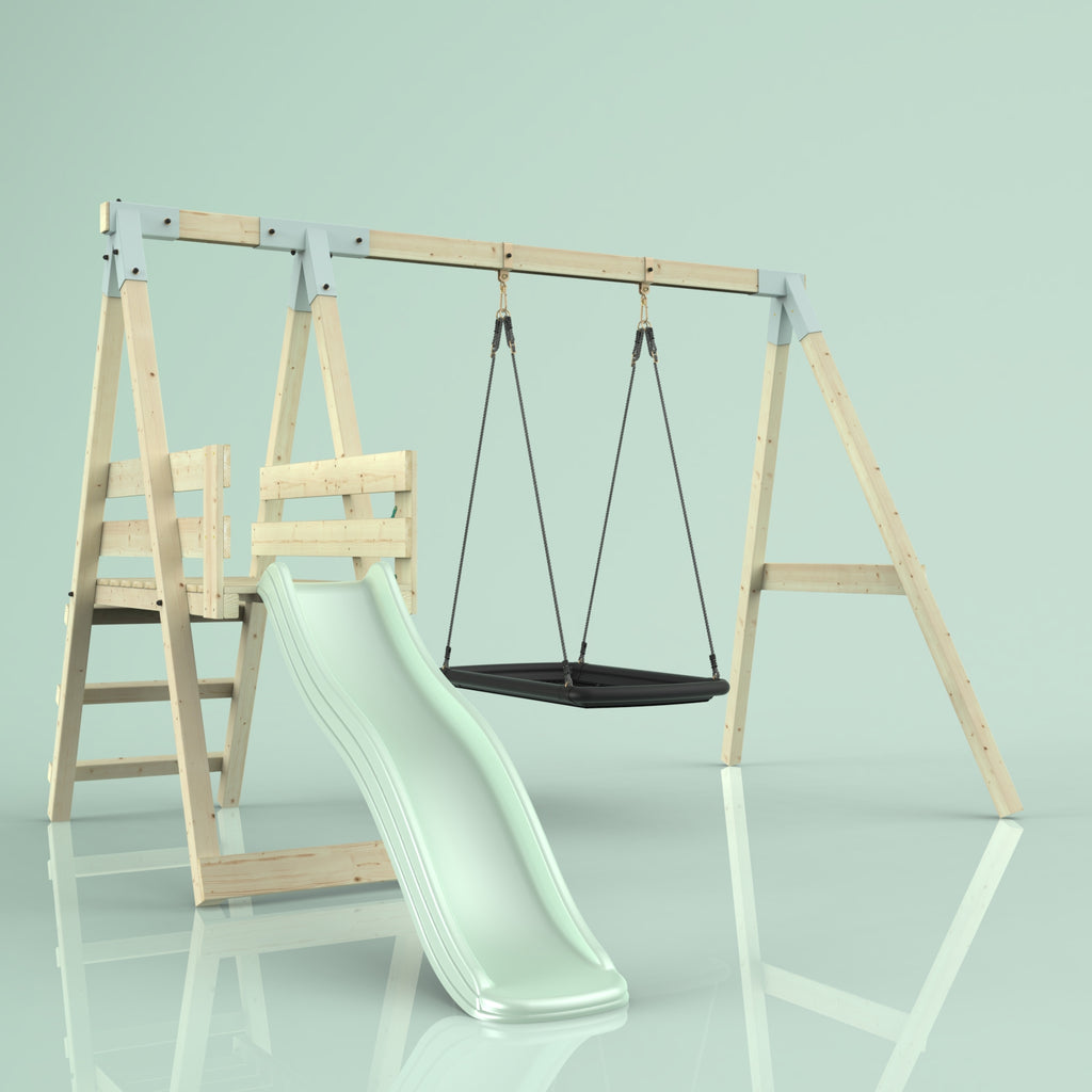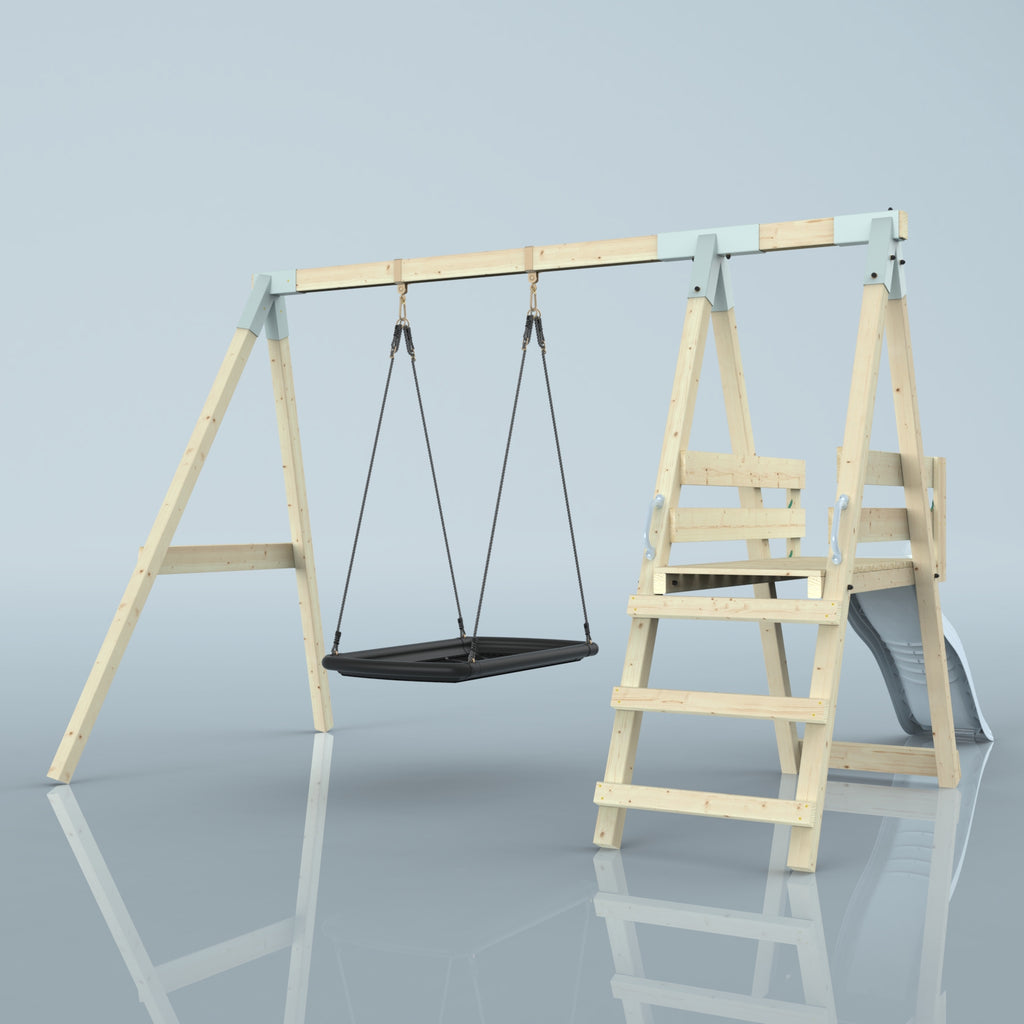 Solltest du dich für die Bootschaukel als Schaukelsitz entscheiden, kann es sein, dass die abgebildete Schaukel nicht der Schaukel entspricht, die du erhältst. Das liegt an einer Änderung in unserer Produktion. Das neue Modell der Schaukel ist ein bisschen eckiger, hat aber sonst die gleichen Abmessungen und Merkmale.