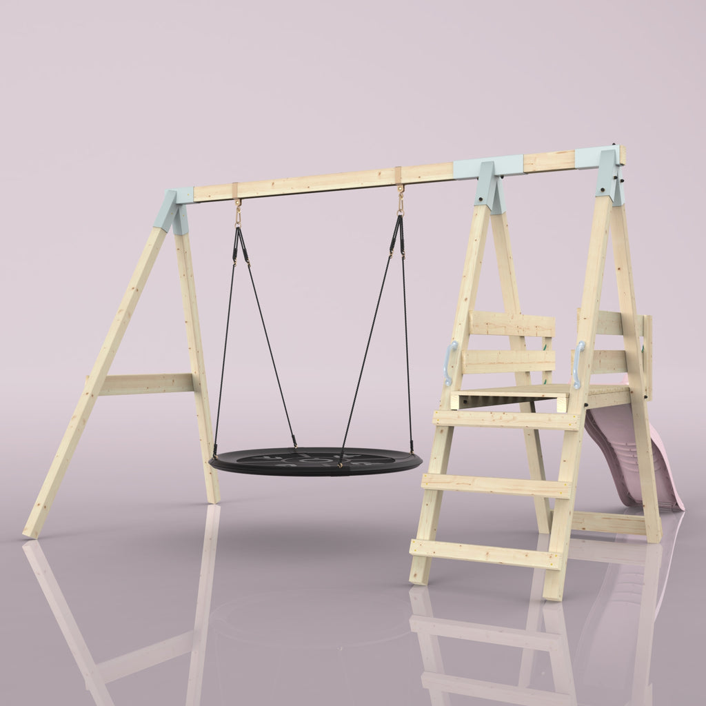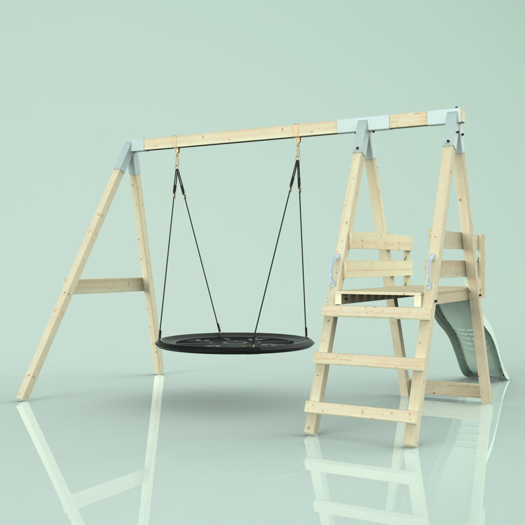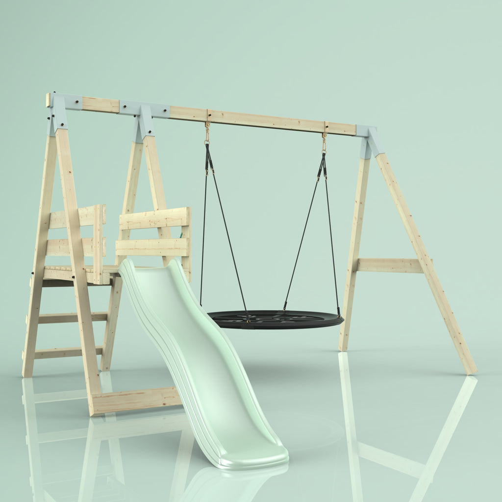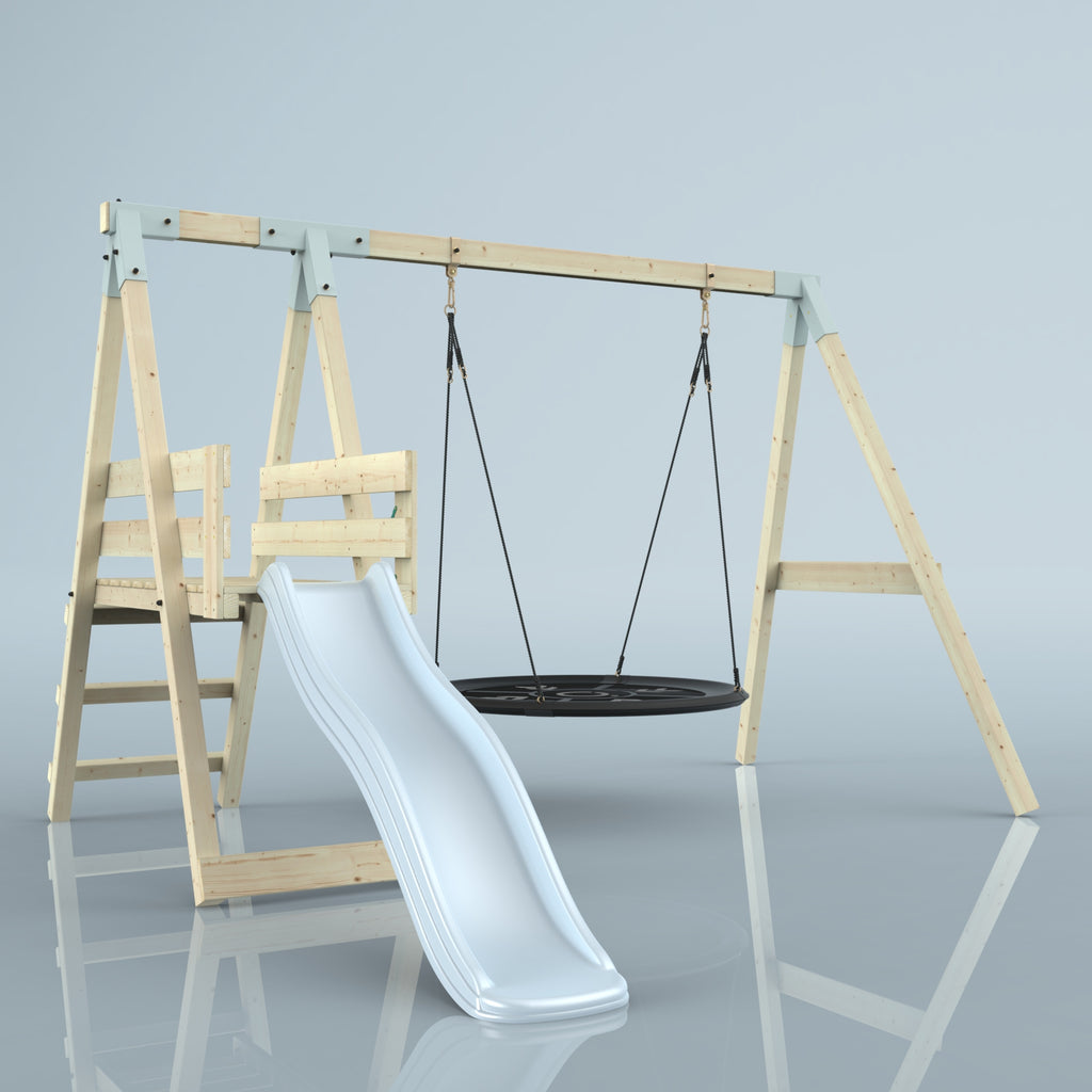 Solltest du dich für die Bootschaukel als Schaukelsitz entscheiden, kann es sein, dass die abgebildete Schaukel nicht der Schaukel entspricht, die du erhältst. Das liegt an einer Änderung in unserer Produktion. Das neue Modell der Schaukel ist ein bisschen eckiger, hat aber sonst die gleichen Abmessungen und Merkmale.