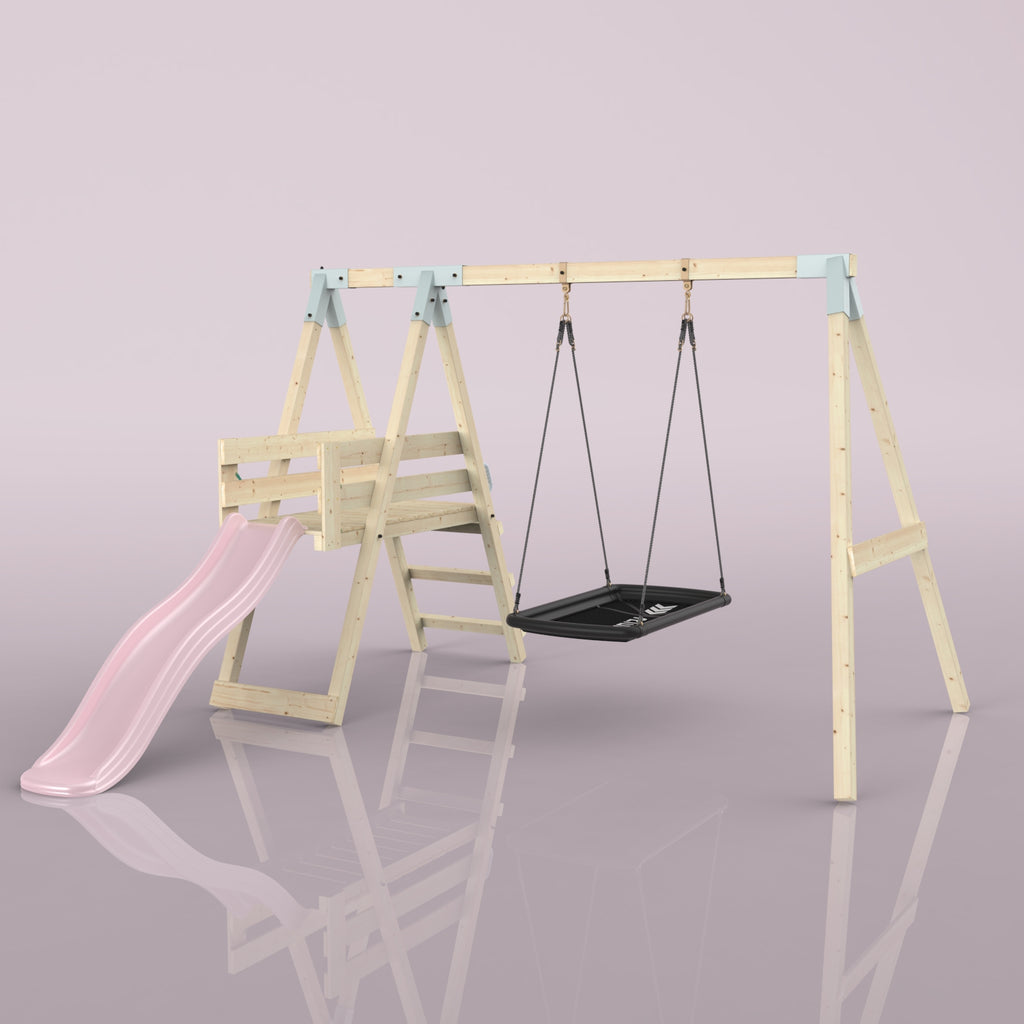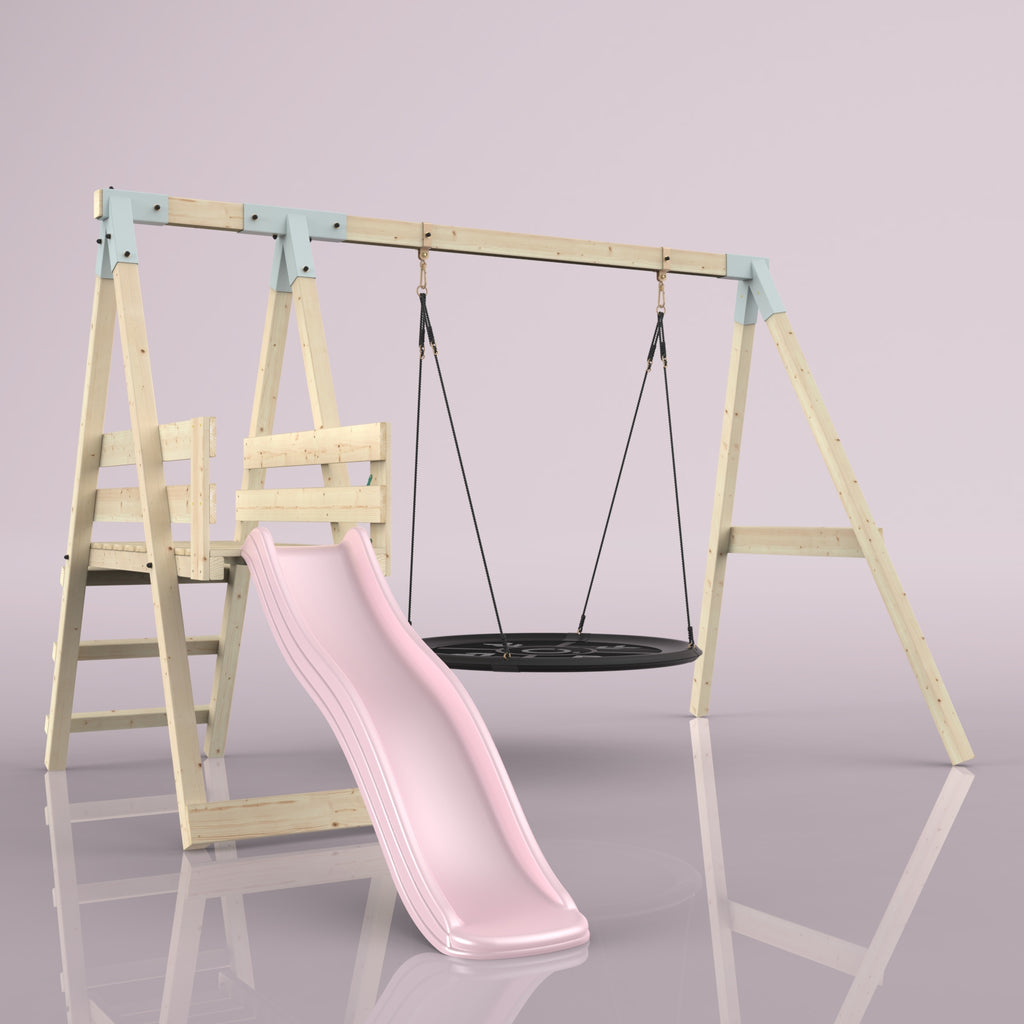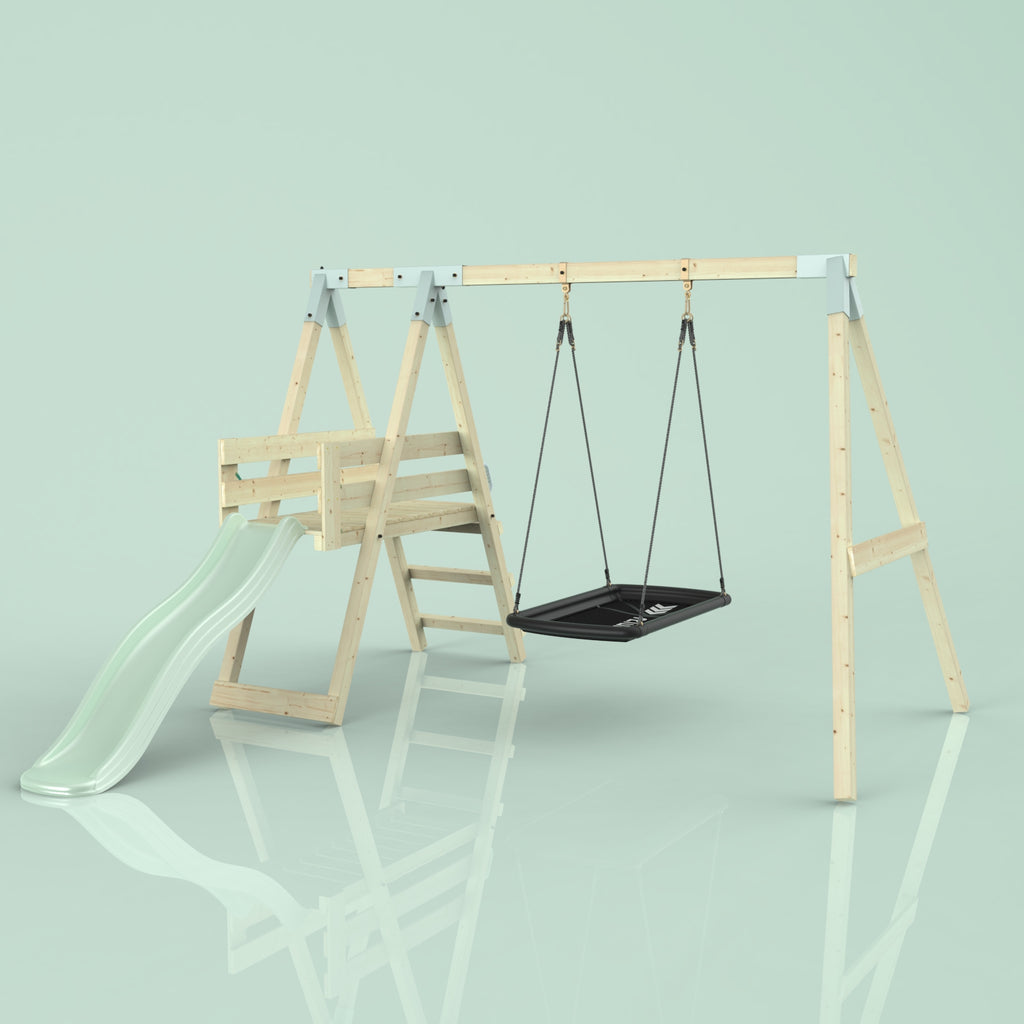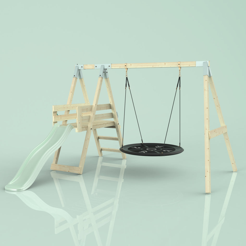 Solltest du dich für die Bootschaukel als Schaukelsitz entscheiden, kann es sein, dass die abgebildete Schaukel nicht der Schaukel entspricht, die du erhältst. Das liegt an einer Änderung in unserer Produktion. Das neue Modell der Schaukel ist ein bisschen eckiger, hat aber sonst die gleichen Abmessungen und Merkmale.