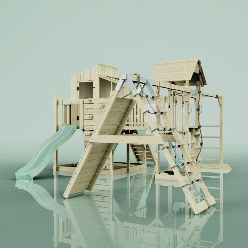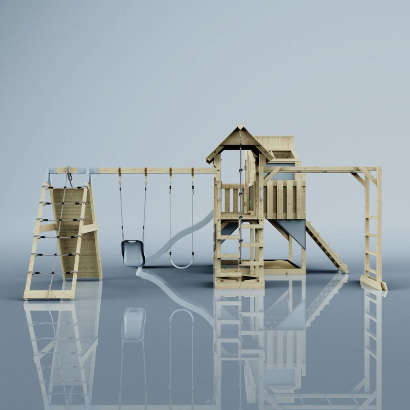 Tauche ein in das Abenteuerland des PolarPlay Spielturm "Gustav"! Dieser Allrounder im Garten zaubert nicht nur ein gemütliches Spielhaus, eine schaukelnde Oase, eine Kletterwand und eine Rutschbahn ins Kinderherz, sondern bietet auch alles, was kleine Abenteurer sich nur wünschen können. Genau wie der Name "Gustav", der für königliche Unterstützung steht, wird dieser Spielturm zum treuen Begleiter für unzählige Spieleabenteuer und strahlende Kinderaugen! 🌈🏰
