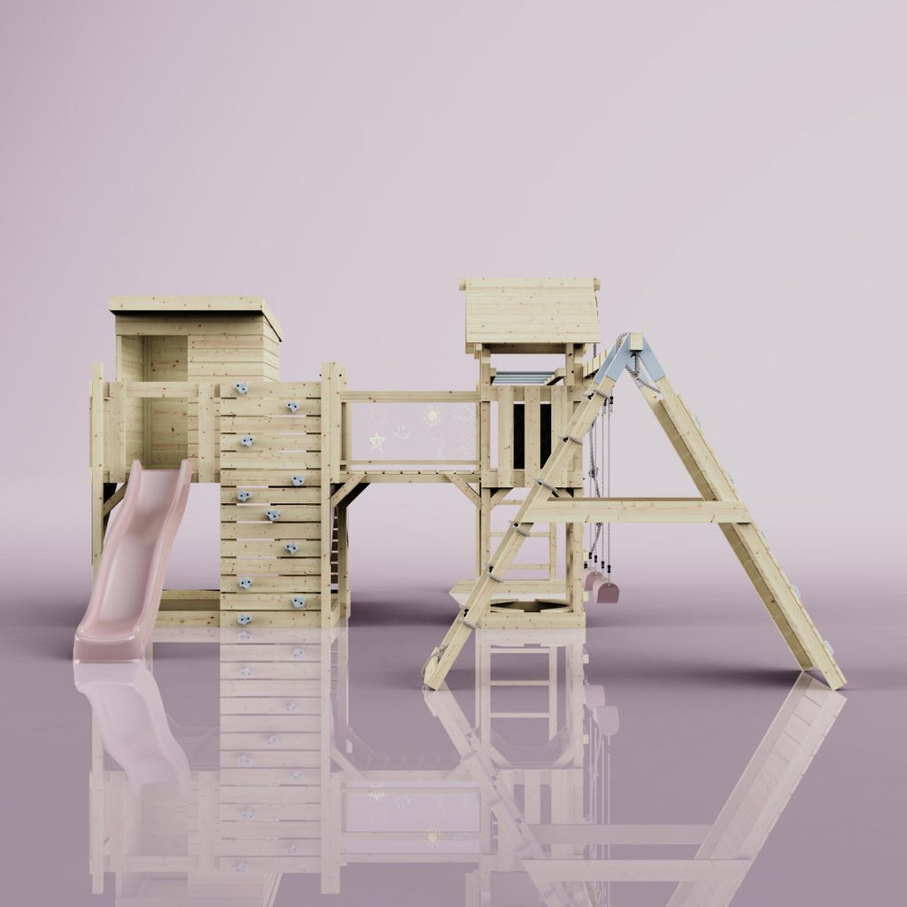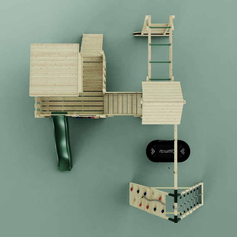 Mit Spielhäusern, Kletterwand, Rutsche und Brücke bringt „Lars“ jede Menge Abenteuer. Wer kommt am Schnellsten über die Brücke?! Erleben Sie spielerische Siege und strahlende Augen mit dem tollen Kinderspielturm „Lars“!